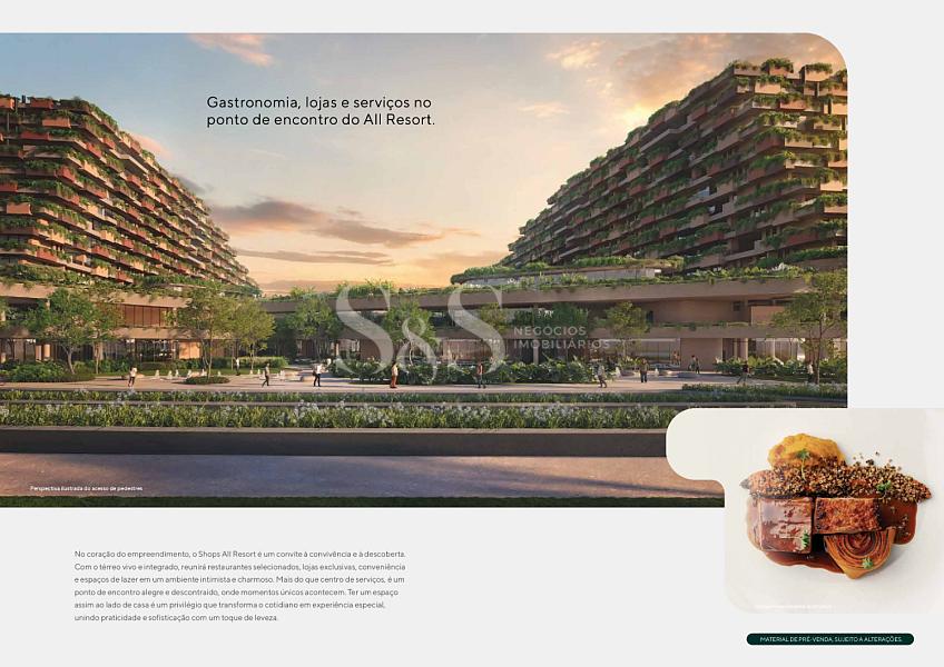 Térreo Vivo e um Clube de padrão internacional: Um térreo acolhedor que promove diversão, relaxamento e conexões. Piscinas privativas, salões de festas e um All Shops completo com tudo que você precisa: entretenimento, gastronomia, wellnes e serviços. Além de espaços de bem-estar exclusivo reservado aos residentes do All Resort. Opções para todas as idades em um espaço sofisticado e dinâmico.