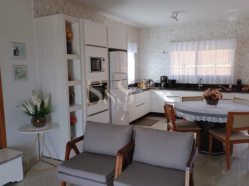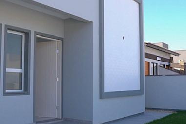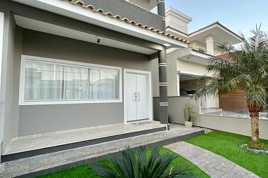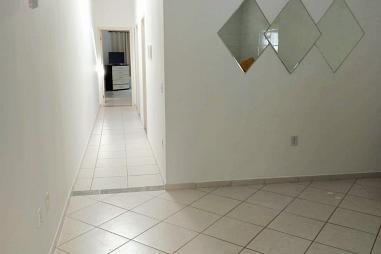 A casa possui dois dormitórios , um banheiro social, sala e cozinha, lavanderia, garagem coberta, churrasqueira e lavabo.