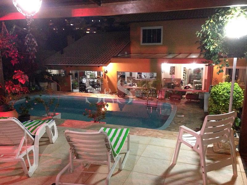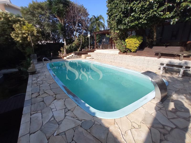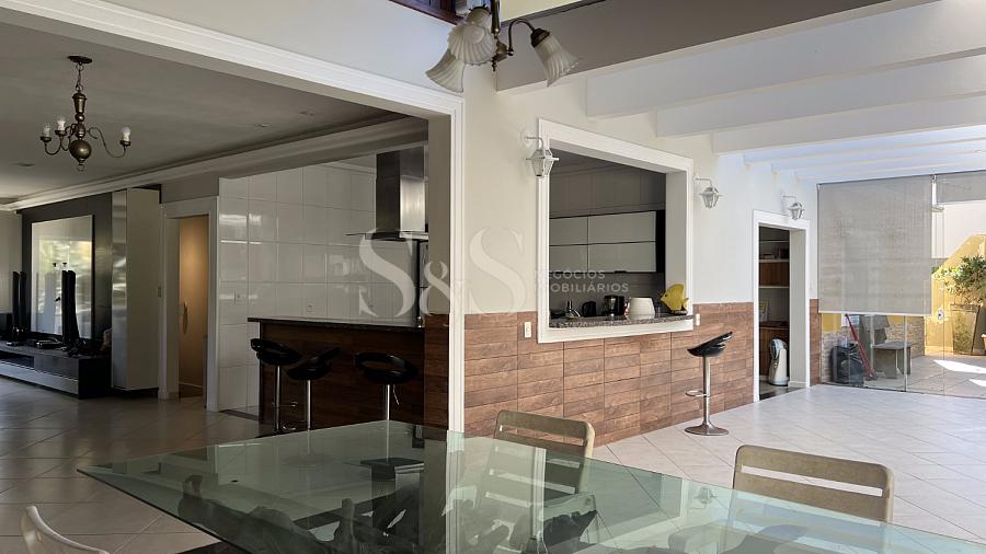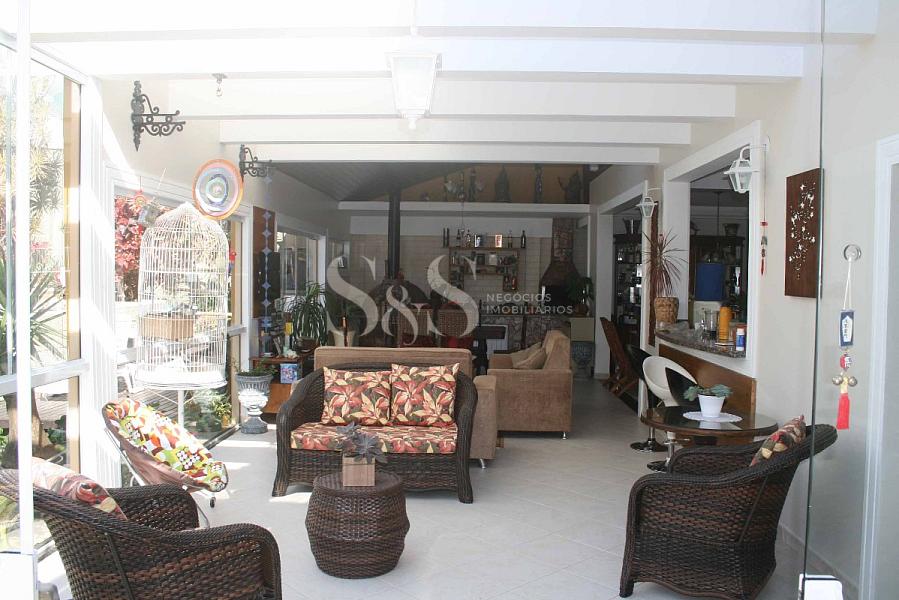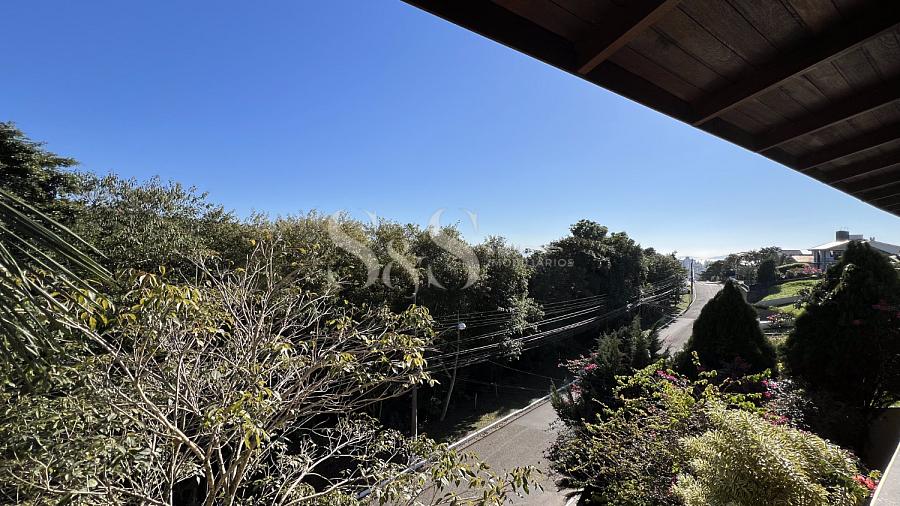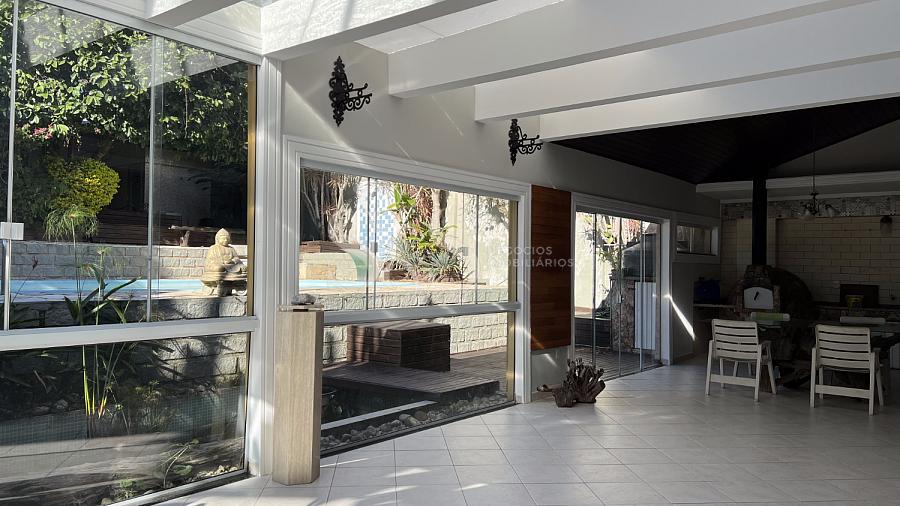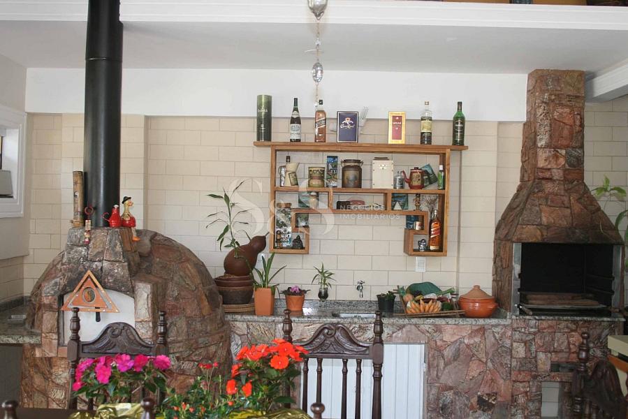 • Terreo: sala de estar/jantar com lareira, escritório, quarto de hóspede, três suítes, lavabo e copa/cozinha (americana com churrasqueira e forno de pizza).