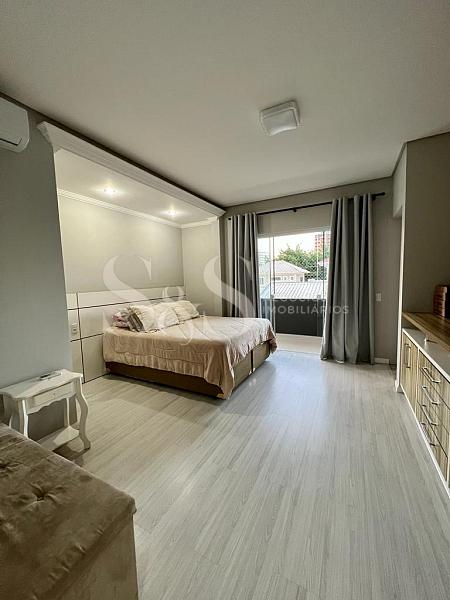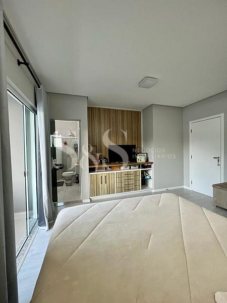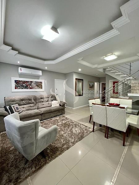 Na parte superior, possui 4 dormitórios sendo 1 suíte master com hidro e closet, sacada nos quartos e banheiro social. No térreo, sala de estar, jantar, sala de TV, lavabo, cozinha e área de serviço.