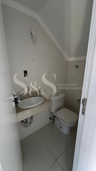 O imóvel no pvto inferior conta com: cozinha e área de serviço, sala com dois ambientes, lavabo, duas suítes e terraço amplo com churrasqueira.