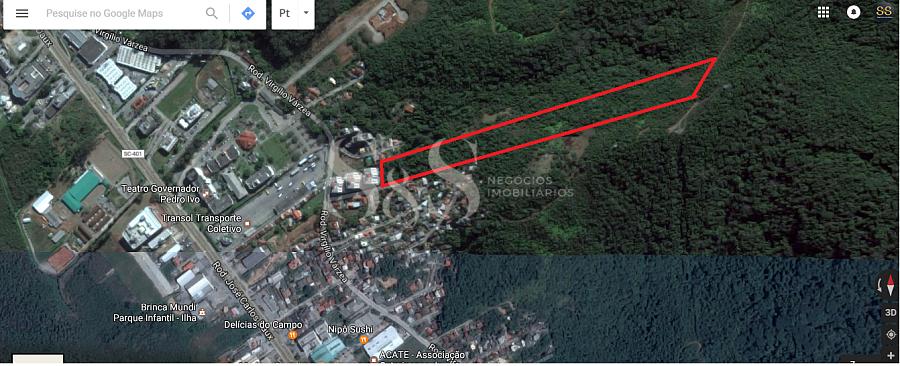 • A área fica em uma localização estratégica ao lado da SC 401, também próxima ao Shopping Floripa, em contra partida está em uma parte mais tranquila, localizada em uma rua em frente a Rod.Virgilio Varzea.